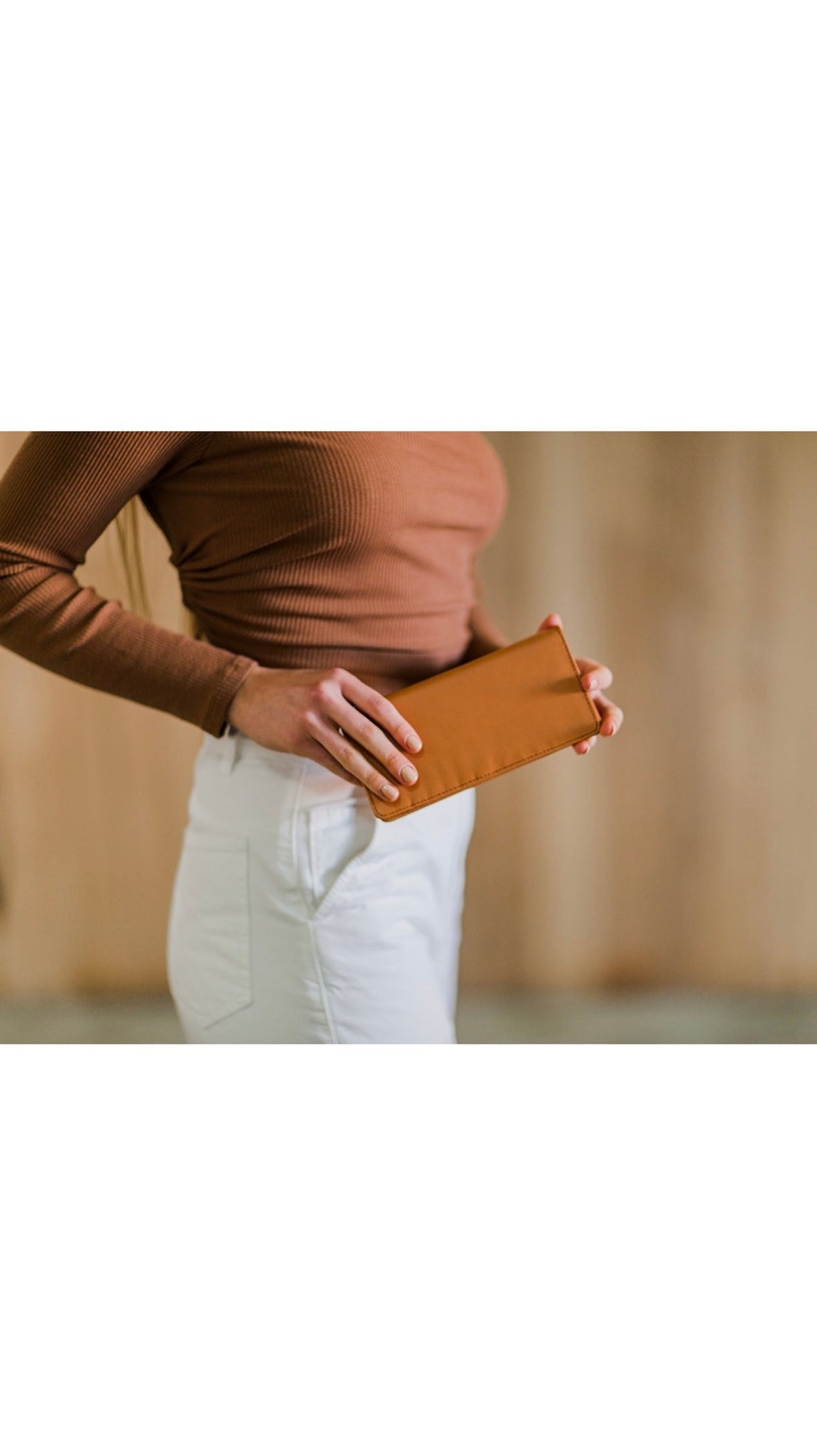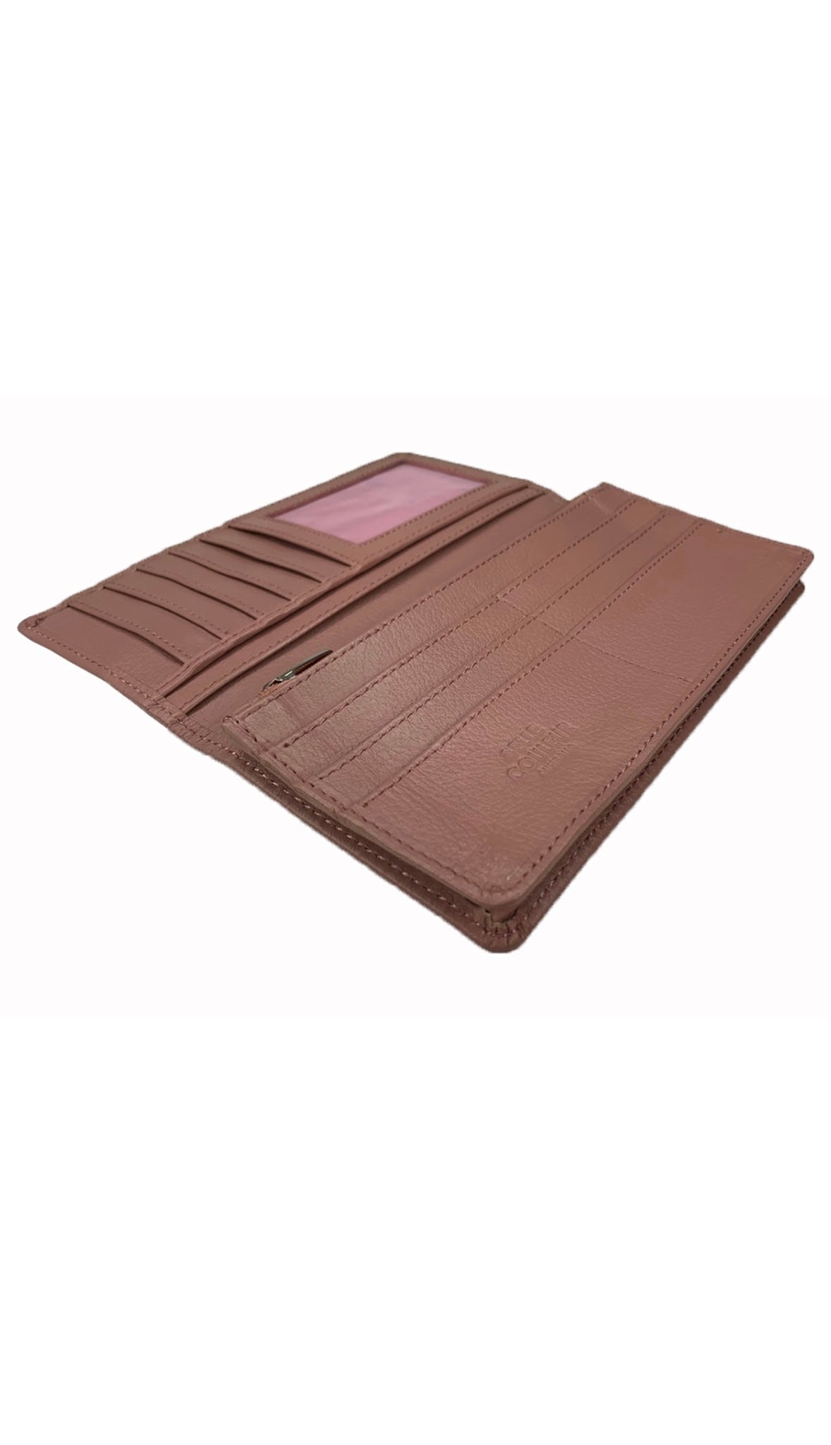 Bi-fold style leather wallet featuring 12 card pockets, 4 currency pockets and a zipped closure pocket extending the length of the wallet.
