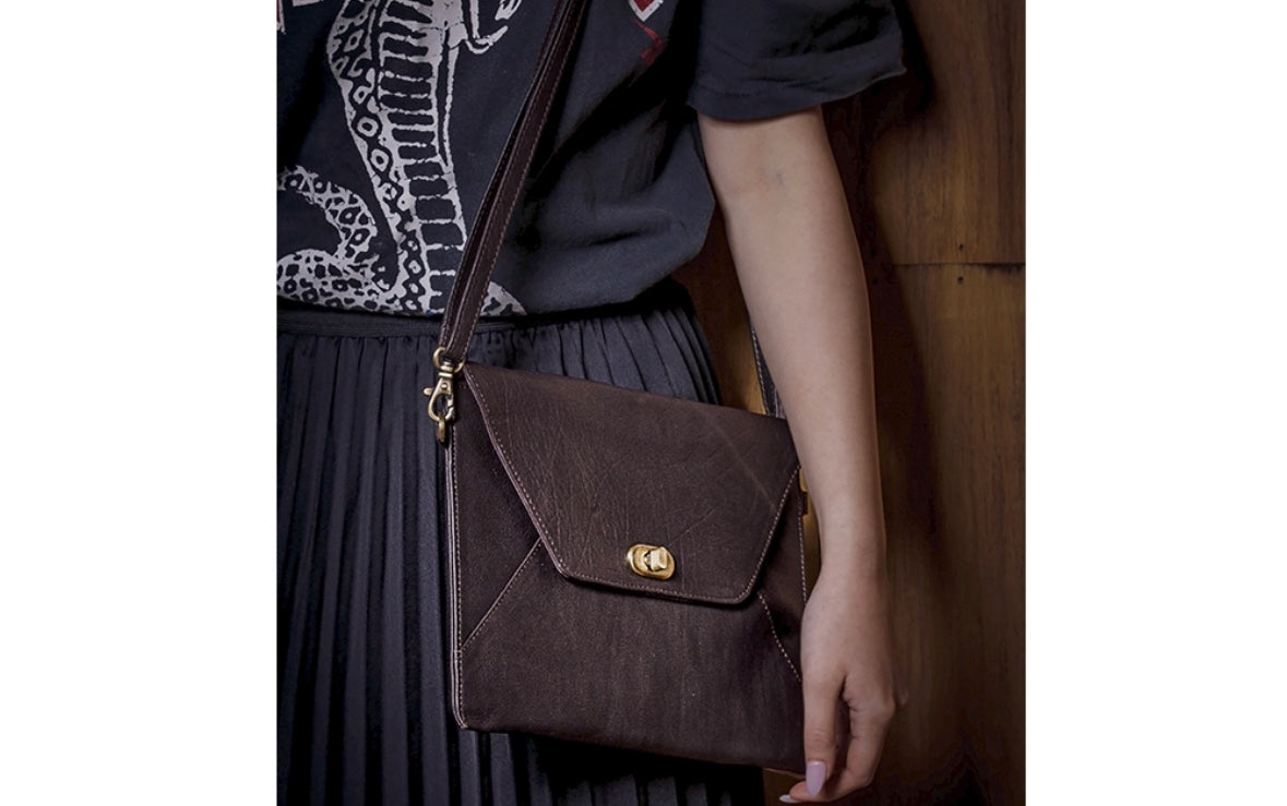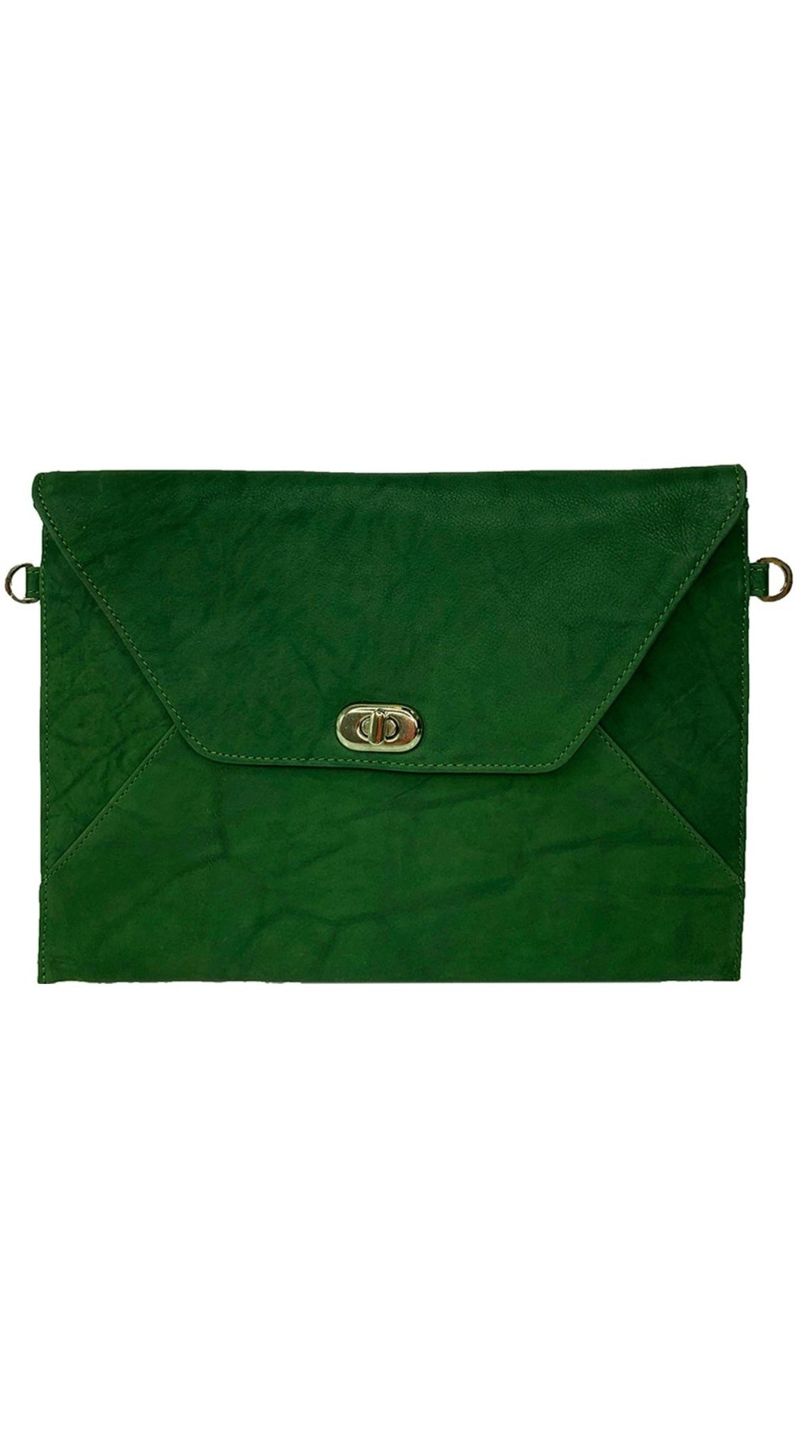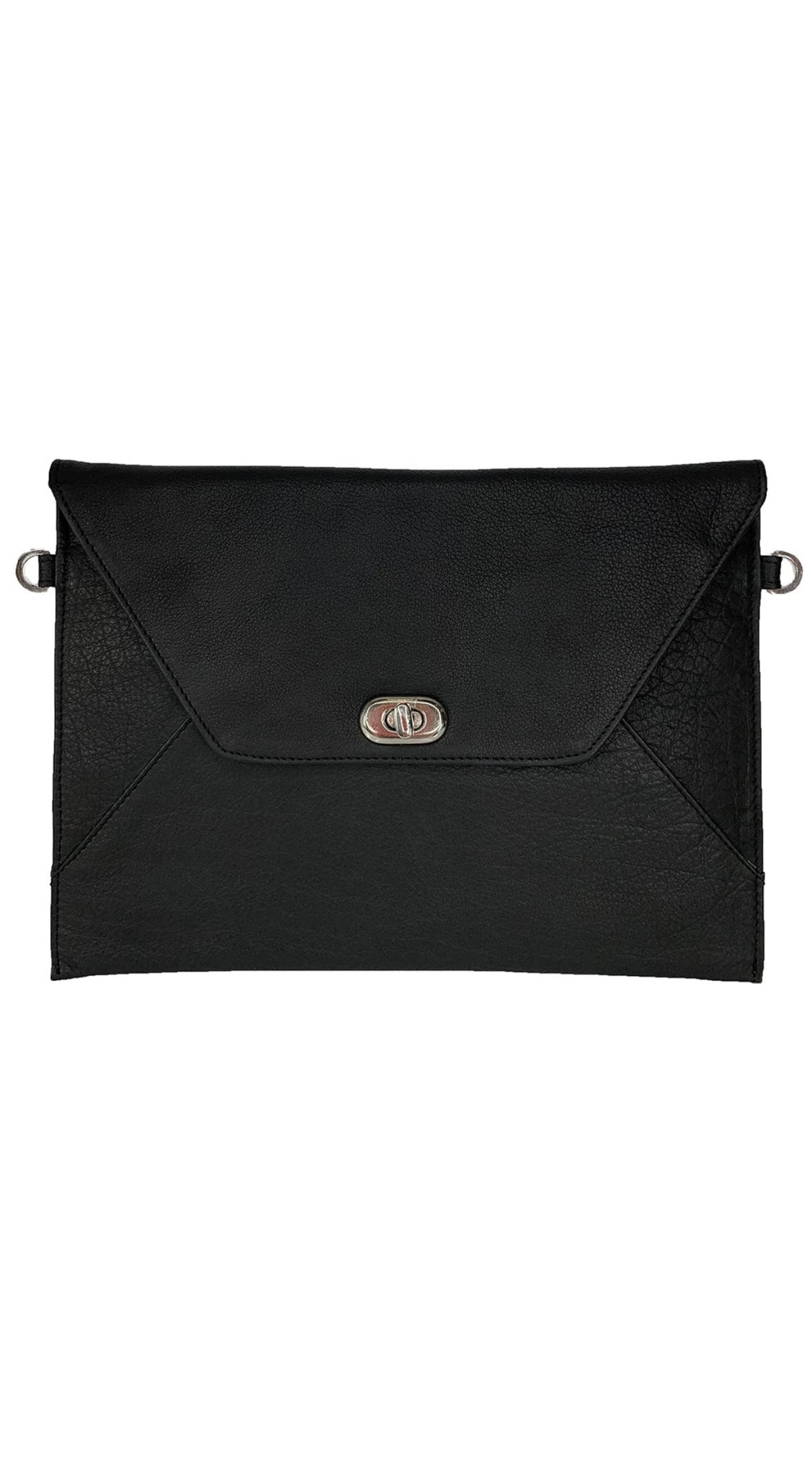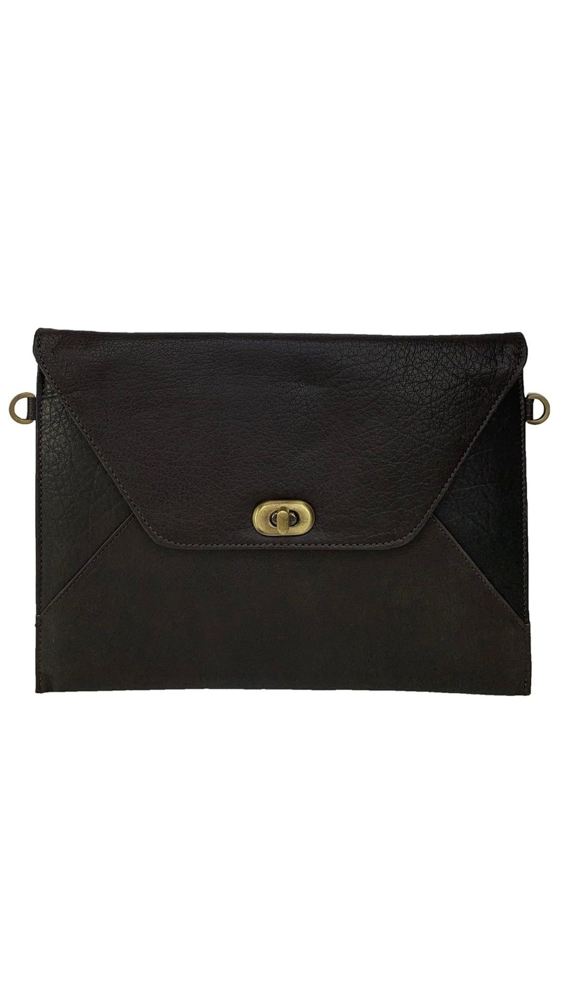 Detachable leather shoulder strap so it can be worn as a bag or held on its own as a clutch.