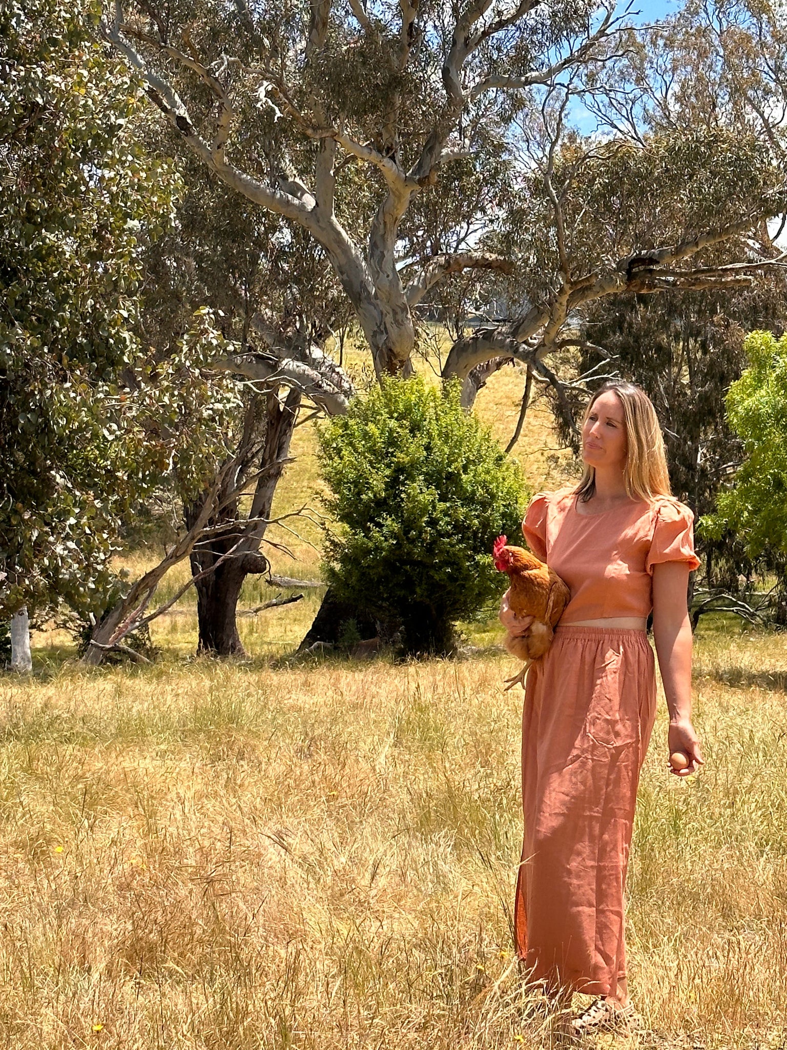 Our Maise in ‘dusty rust’ high waisted maxi skirt features a contemporary relaxed fit in a beautiful linen. Featuring an elastic waistband, side pockets and a knee-high side split, this skirt can be worn high -waisted, or lower on the hip with our matching Mima blouse . This is the perfect trans-seasonal skirt that can be dressed up with heels, or dressed down with boots. Made from sustainable linen. Features:
