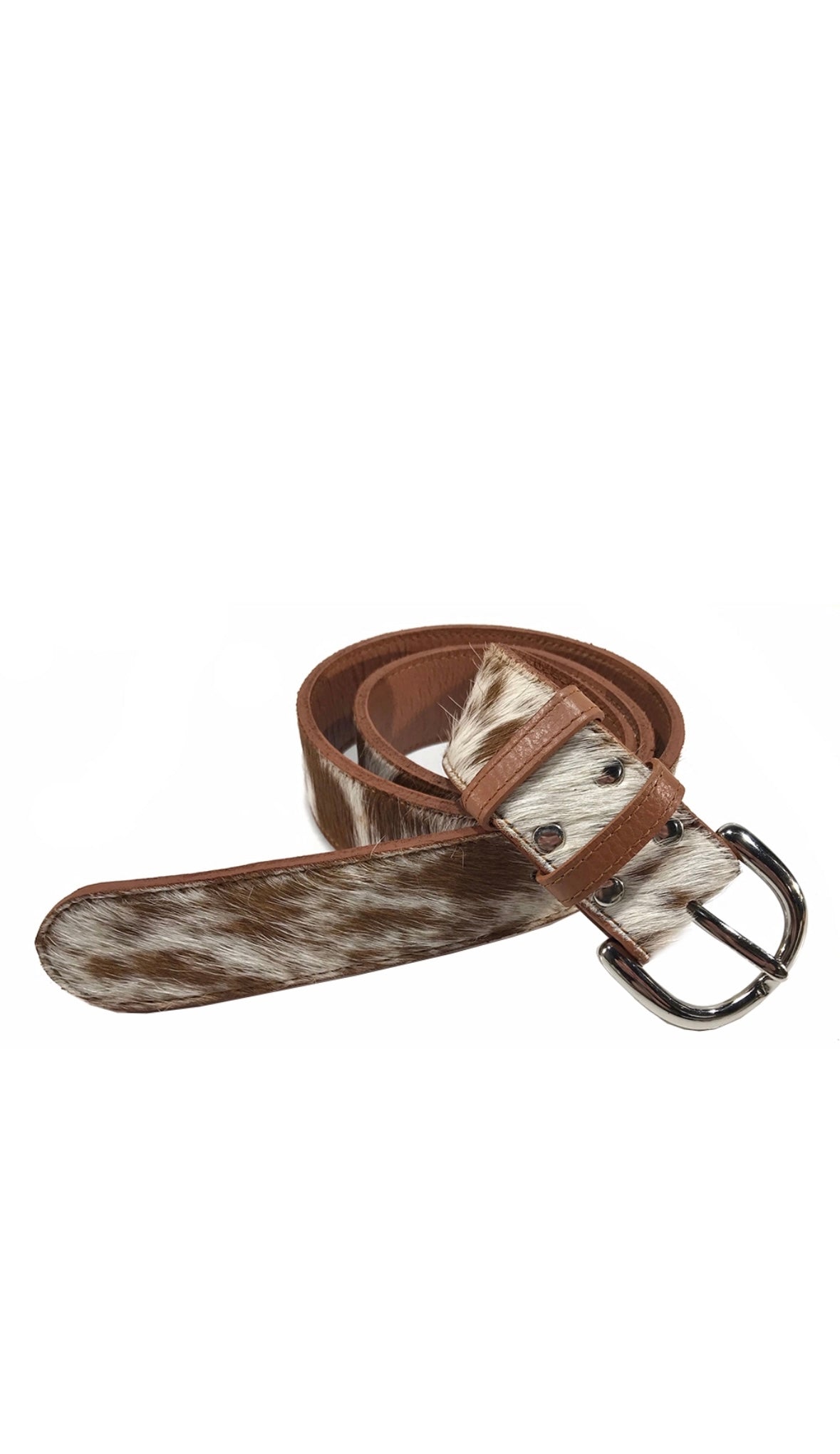 Stand out in style with this stunning cowhide belt, the perfect accessory to compliment any outfit.